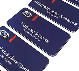 Для компаний, работающих с потоками клиентов, качественные бейджи их сотрудников являются элементом корпоративного имиджа. Богатый опыт, умения и навыки позволяют организовать производство бейджей а так же крепления для бейджей на высоком уровне. В этом случае и крепления для бейджей играют не последнюю роль, а надписи, нанесенные с помощью лазерной гравировки придадут бейджу солидный, законченный вид.